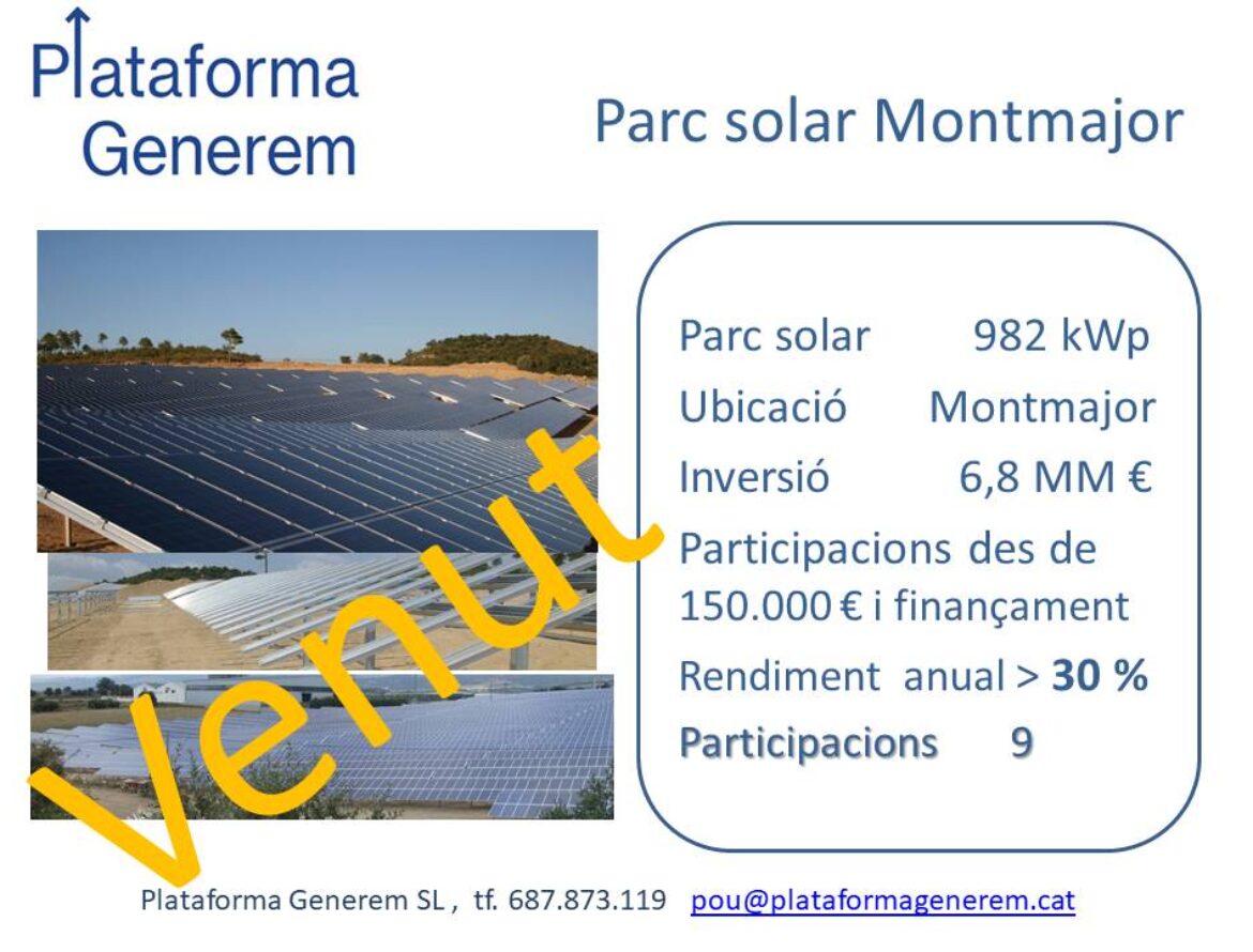 - Compte d’explotació garantit: L’energia solar és gratuïta i inesgotable. El sol és una font inesgotable. Un cop amortitzada la inversió en la instal·lació, el teu rendiment és vitalici.